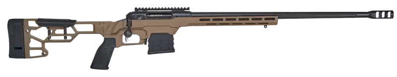 Short Action, MDT LSS XL Chassis with FDE Cerakote, Adj. Comb and LOP, 1-Piece 20 MOA Rail, Muzzlebrake, 10-rnd AICS Magazine, Carbon Steel Heavy Barrel, Threaded 5/8-24.