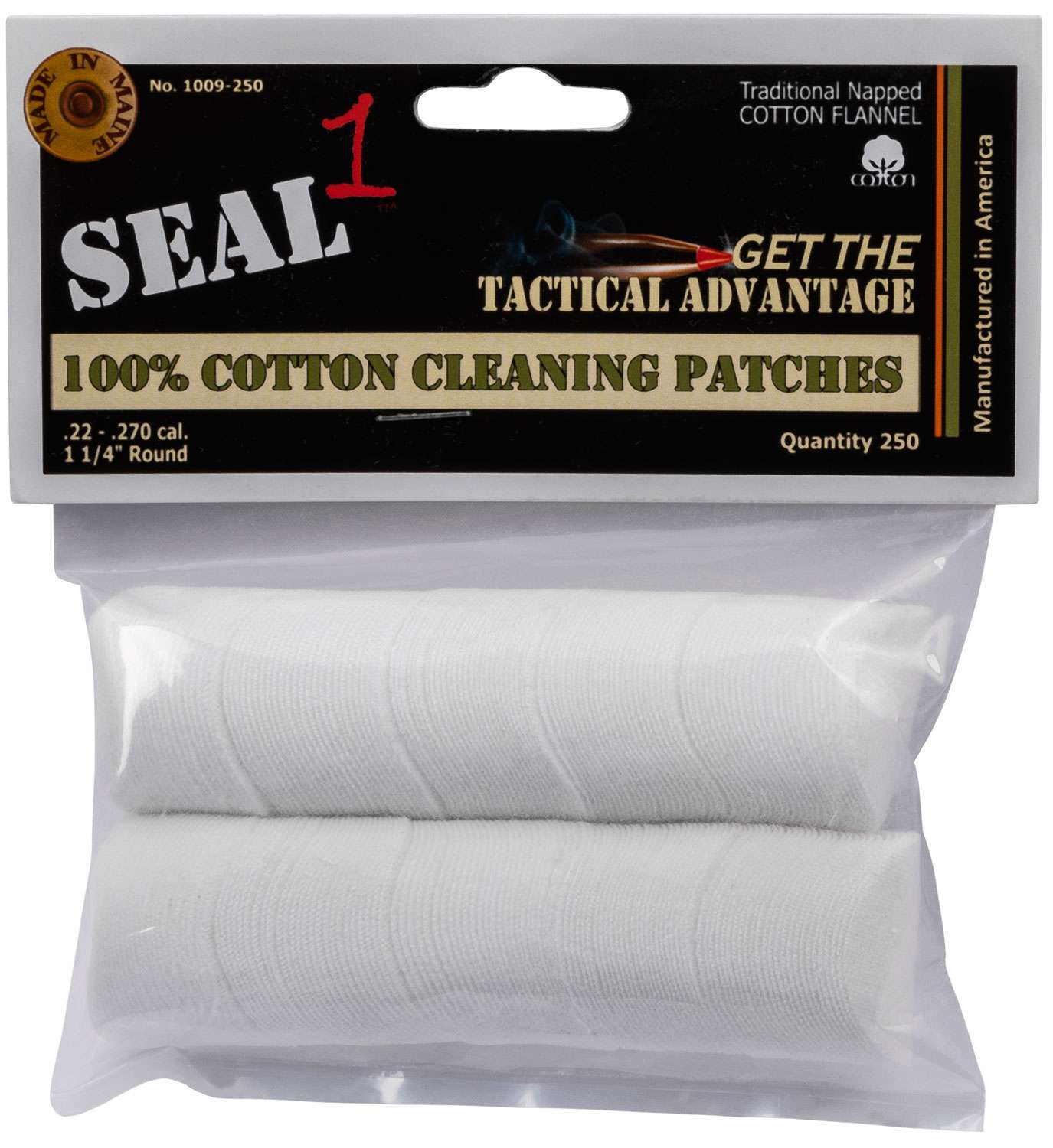 SEAL 1 Traditional Style cleaning patches are made from 100% USA cotton and are double napped flannel. All the benefits of our traditional style 100% cotton flannel cleaning patches- density, durability and absorbability.