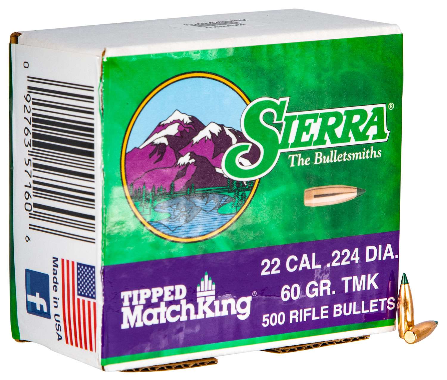 Sierra has enhanced a segment of the MatchKing line by adding the acetal resin tip, thus crowning the Tipped MatchKing bullet line. The major advantage of adding a tip to the bullet is the reduction of drag, producing a more favorable ballistic coefficient.