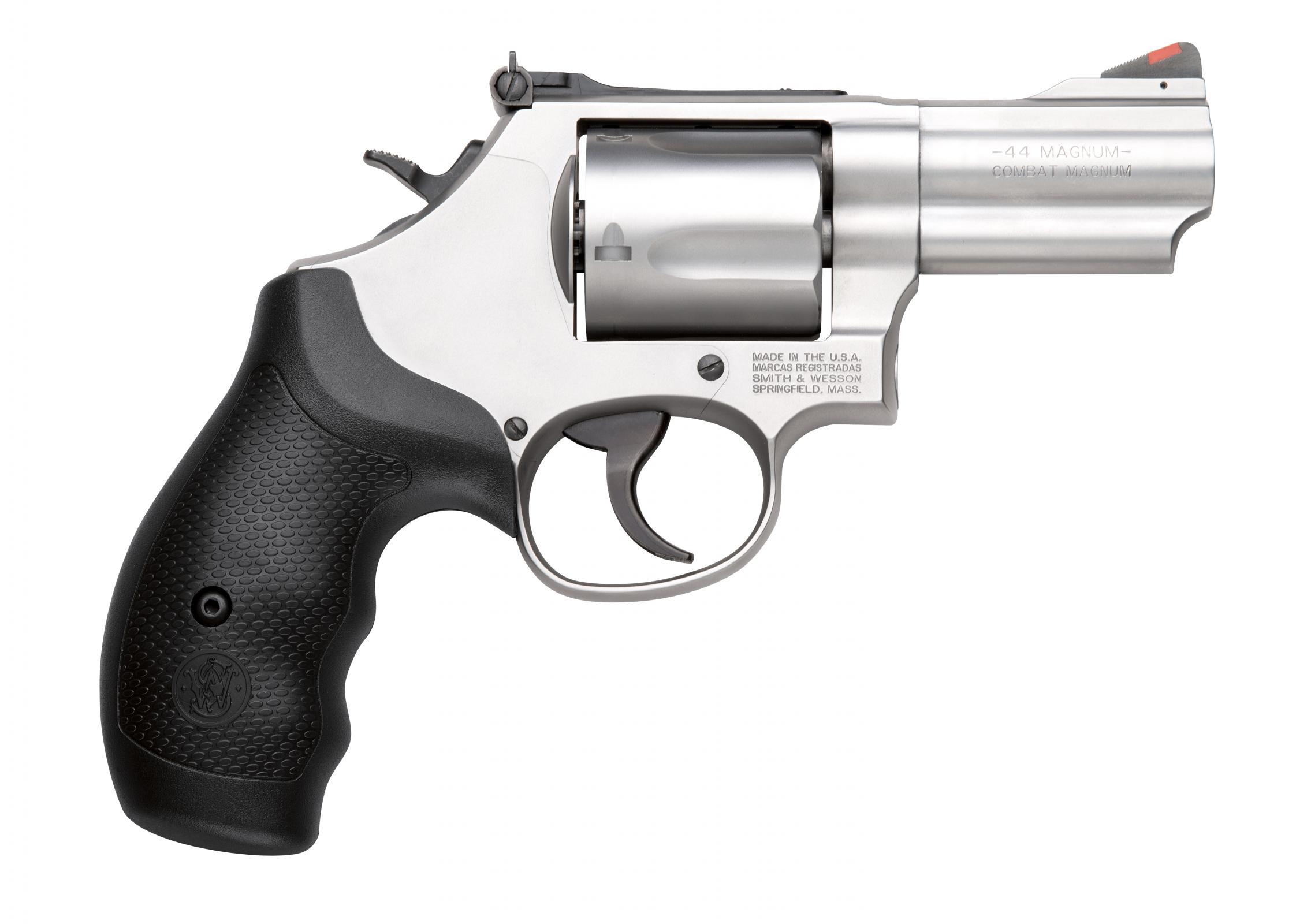 Smith & Wesson L-Frame revolver is built to suit the demands of the most serious firearms enthusiast. The L-Frame has a strong, durable frame and barrel built for continuous Magnum usage. It features a ball-detent Lock-Up, 2-piece barrel, and full length extractor rod. This model stainless steel frame, barrel, and cylinder, black synthetic grip, and red ramp front and adjustable rear sights.