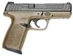 The Smith & Wesson SD9 pistol is a self-defense firearm with a Flat Dark Earth finish with a matte black slide. The pistol also has 3-Dot white sights, polymer frame, and stainless steel slide and barrel.