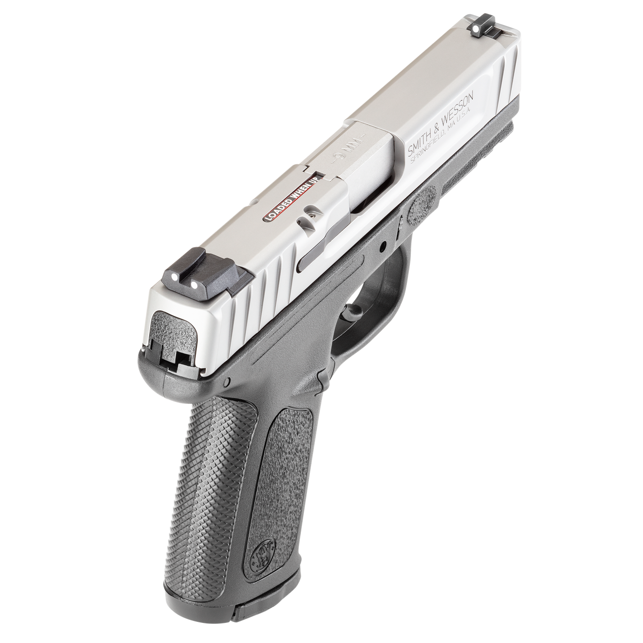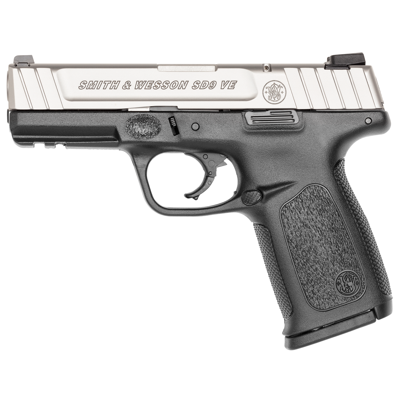 The Smith & Wesson SD9VE features an SDT (Self Defense Trigger) for the optimal, consistent pull from the first round to the last. The polymer grip frame has a slim ergonomic, textured grip, finger locator, aggressive front and backstrap texturing, and a Picatinny-style front accessory rail.