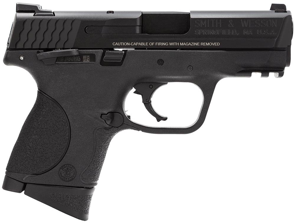 In designing the M&P, Smith & Wesson considered the needs of military and law enforcement from every conceivable angle, so the M&P is the standard in reliability. The original M&P has a reinforced polymer chassis, superior ergonomics, ambidextrous controls, and proven safety features. The slide has scalloped slide serrations and drift adjustable sights. This compact model features a black frame finish, two magazines, Picatinny rail, manual safety, and three interchangeable backstraps.