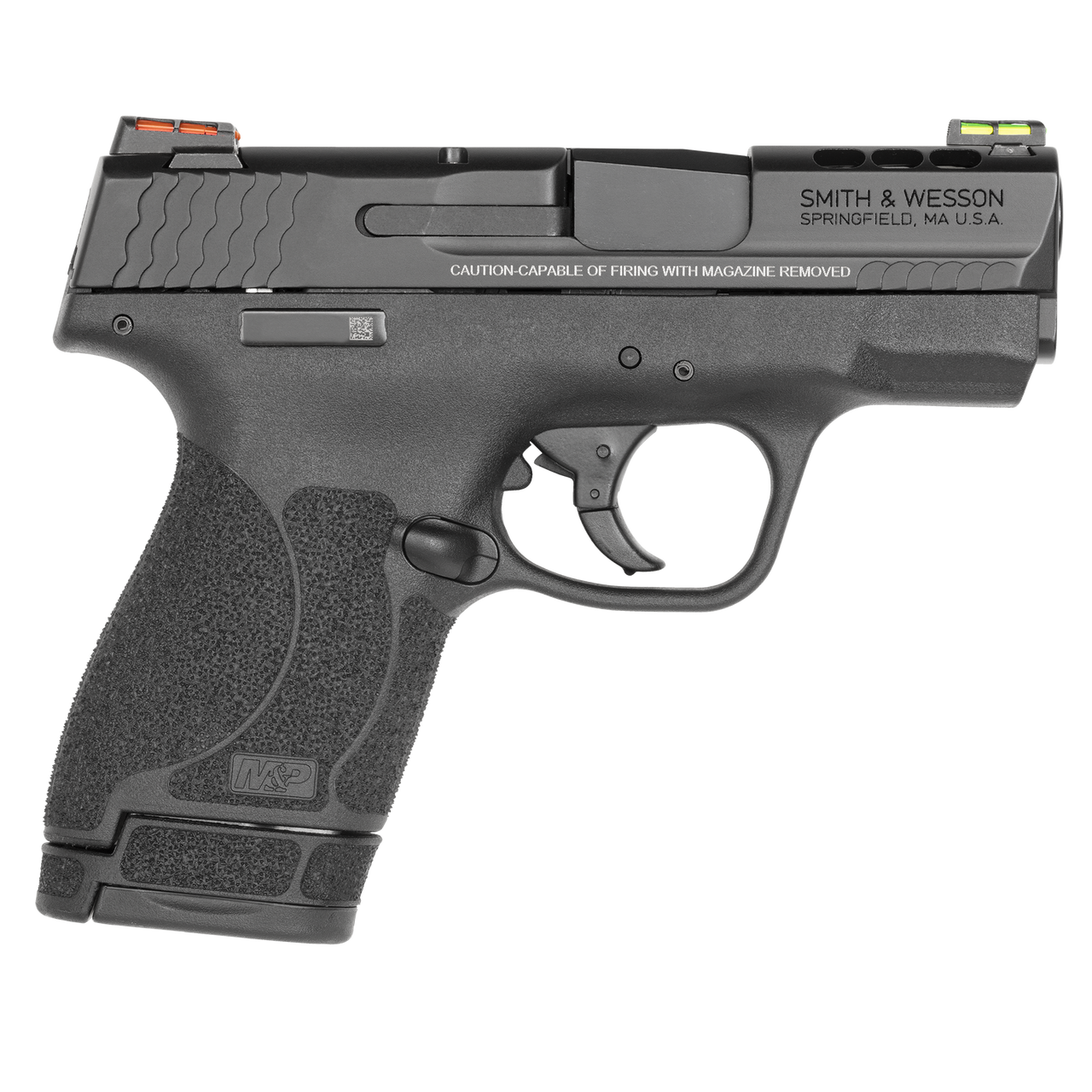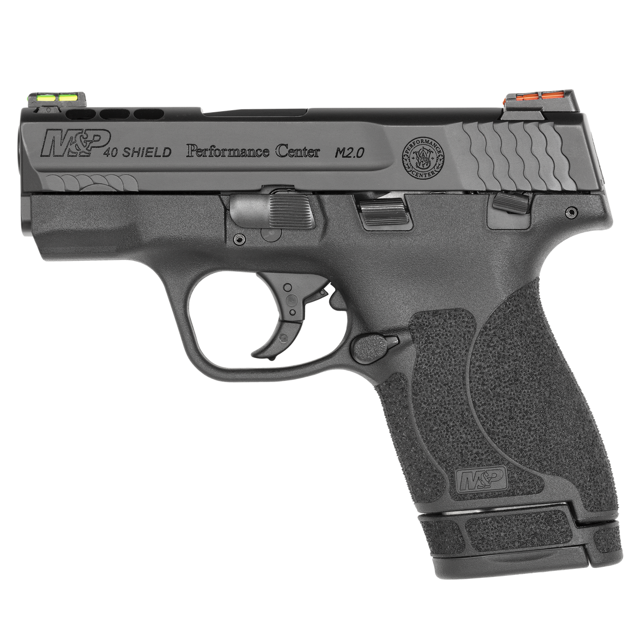 The Smith and Wesson Performance Center M&P 40 Shield M2.0 has a slim, compact profile for concealed carry. Smith & Wesson M&P pistols are known for having a reinforced polymer chassis, superior ergonomics, proven safety features, and aggressive grip texture for enhanced control.