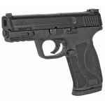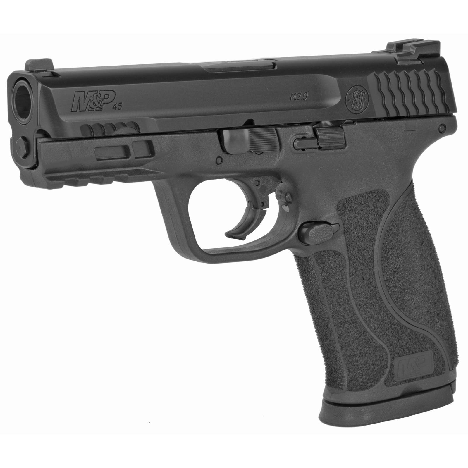The Smith & Wesson M&P has a reinforced polymer chassis, superior ergonomics, ambidextrous controls, and proven safety features. In designing the M&P, Smith & Wesson considered the needs of military and law enforcement from every conceivable angle, so the M&P is the standard in reliability when your job is to serve and protect and your life is on the line. The M&P M2.0 features an extended stainless-steel chassis and high grip-to-barrel bore axis ratio, an aggressively-textured grip, and four interchangeable palmswell inserts for optimal hand-fit and trigger reach, and two magazines. This 45 ACP Compact model has 4" stainless steel barrel and slide with a black Armornite durable corrosion-resistant finish and no manual thumb safety.