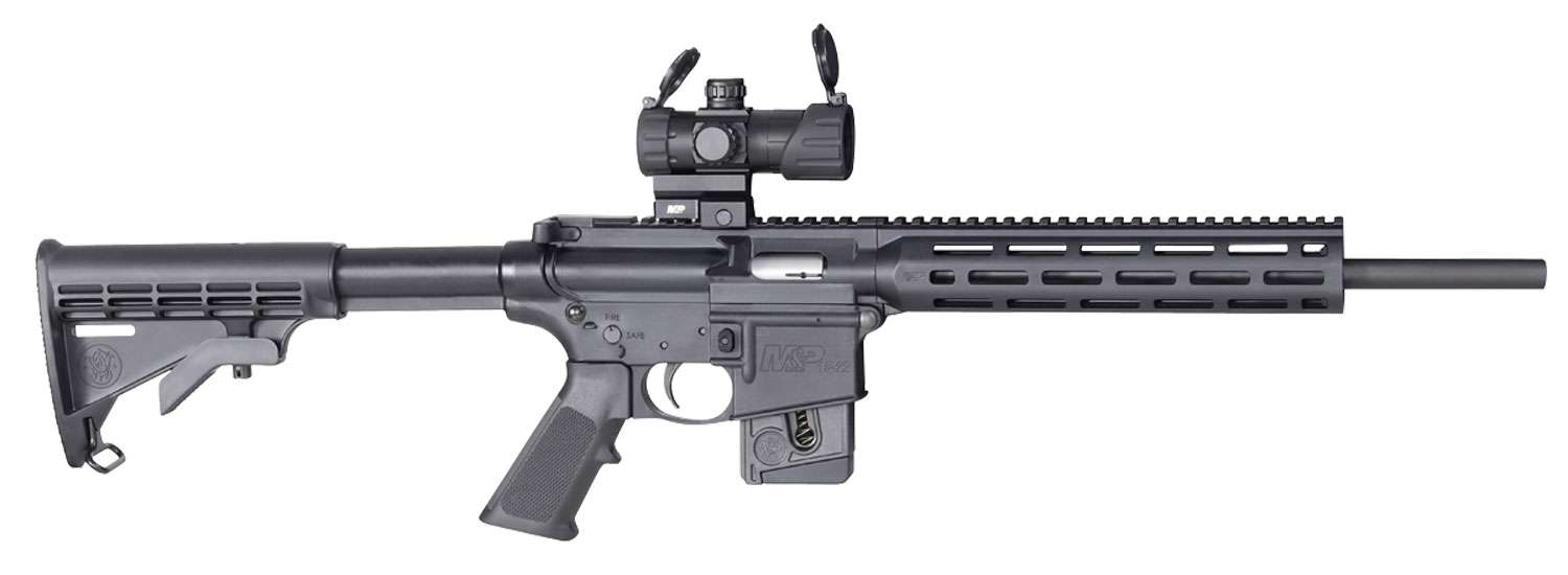 The M&P15-22 Sport is everything to love about the M&P15 but in .22LR. Its lightweight frame, weighing less than 5 pounds, makes this a fantastic firearm for shooters of all ages and abilities. It features the Magpul M-LOK system for the addition of accessories at varies points on the handguard. It comes with the Magpul MBUS front and rear sights but has a long Picatinny rail ready for red dots or optics. The M&P15-22 still offers features such as a full charging handle, a 6 position stock, a 2-position safety, and is CA Compliant. It has a M&P Red/Green dot optic and comes with a 10-round magazine.