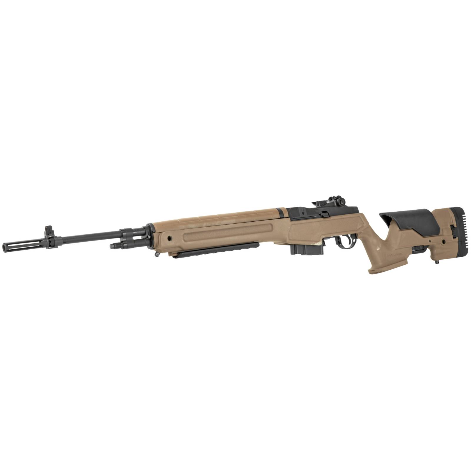 The Loaded Series combines the appearance and tradition of the Standard M1A with all the goodies you want to take the rifle to the next level. All Loaded models have a medium-weight premium air-gauged National Match barrel for greater accuracy. Competitive shooters will also appreciate the National Match tuned 4.5-5lb two-stage trigger. A National Match front sight blade and non-hooded Match Grade rear aperture aid in precise target acquisition. This model features a precision adjustable FDE synthetic stock and carbon steel barrel.