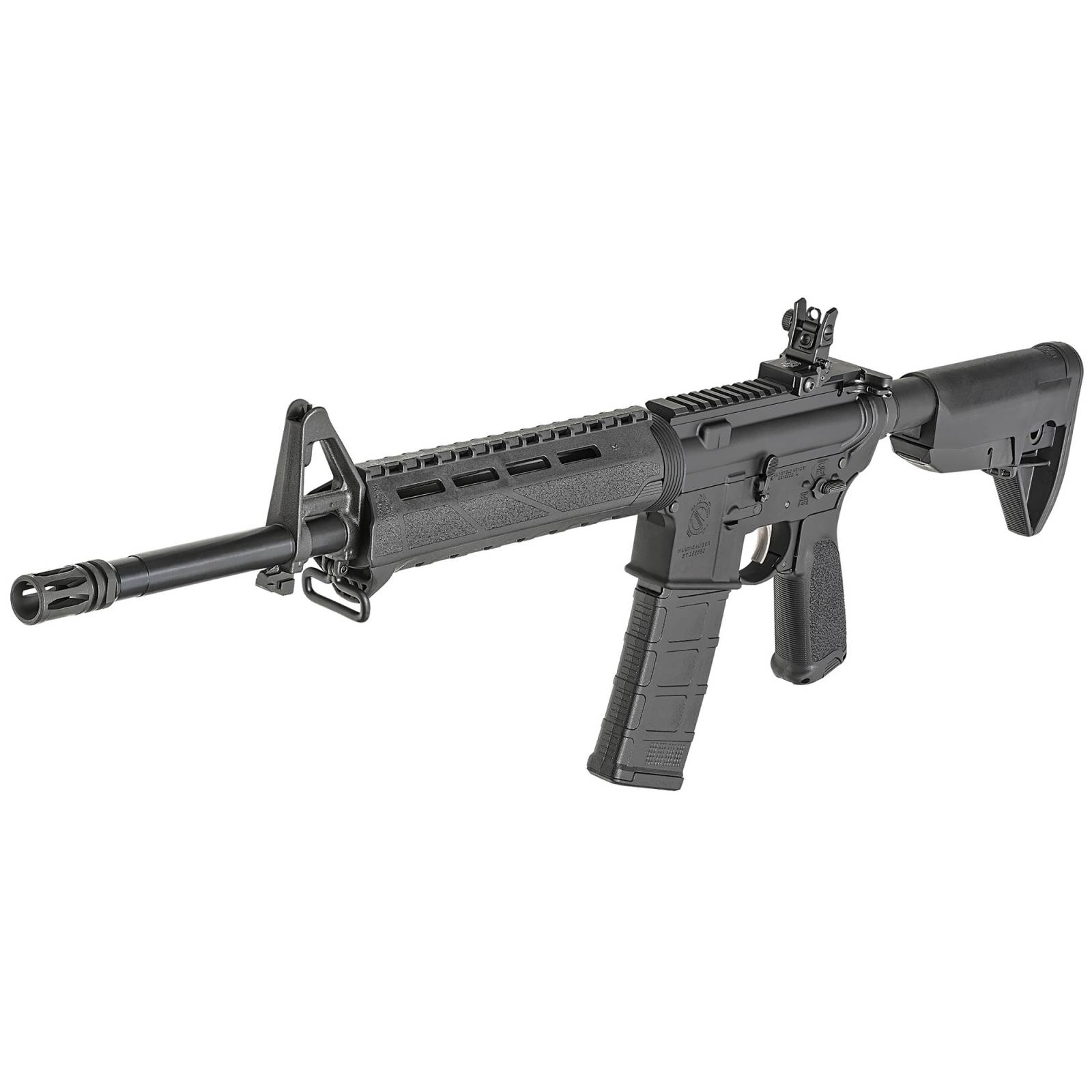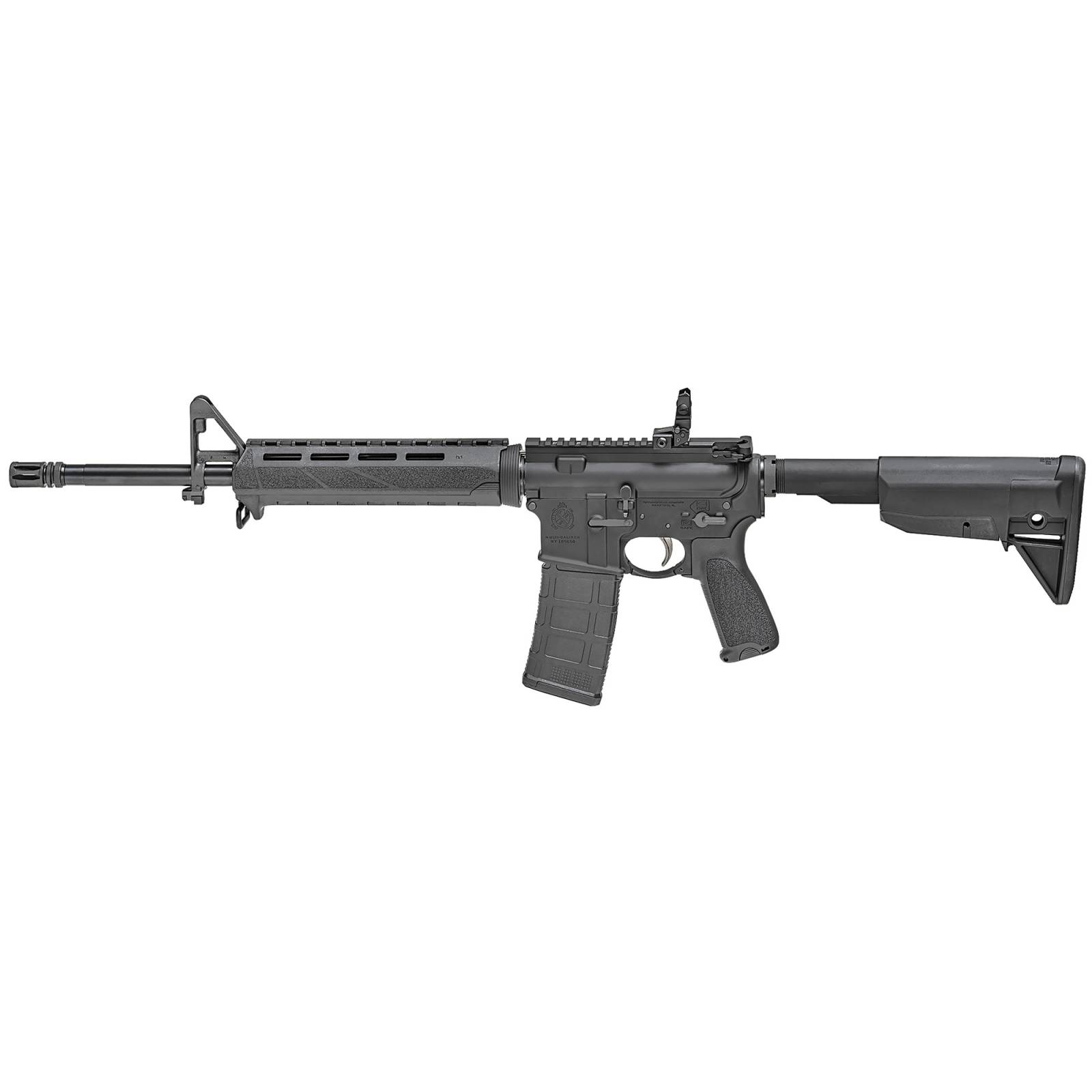 The Springfield Armory Saint 5.56 NATO rifle, with its 16-inch barrel, is a highly-reliable option for rifle enthusiasts. The rifle's impressive 30+1 round capacity makes it an ideal choice for extended shooting time. The black finish on the rifle adds a sleek and professional touch to the overall design.