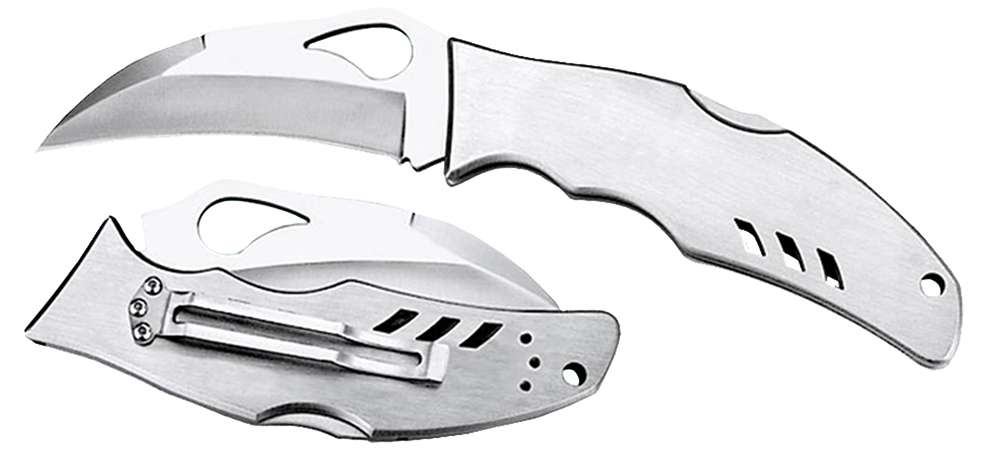 The BY07 Byrd Crossbill is a noteworthy combinationof high-quality materials and superior manufacturing standards at an economical price point. The Crossbill is highly adaptable with the hawkbill shaped blade that is curved for controlled pulling cuts. Originally used by the marine industry, the blade shape holds rope, line, webbing and netting against the sharpened edge, keeping it from slipping off the tip. The Crossbill's hollow-ground blade is manufactured using 8Cr13Mov stainless steel, which contains both molybdenum and vanadium, enhancing the blade's ability to hold a sharp cutting surface and wear less over time and use. Its comet-looking blade hole is a trademark of the byrd line and is synonymous with the stringent quality requirements, high performance material and manufacturing, which go into every byrd knife. Entirely stainless steel, the handle has ergonomic contours making long term and strenuous cutting more comfortable. A David Boye Dent is ground away from the lock release to inhibit the chance of gripping the knife tightly enough to unintentionally release the lock during use.