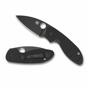 Spyderco Efficient, Folding Knife, 8Cr13MoV, Plain, Drop Point, Black Blade, Circle Thumb Hole/Pocket Clip, 3", Blk G10 C216GPBBK