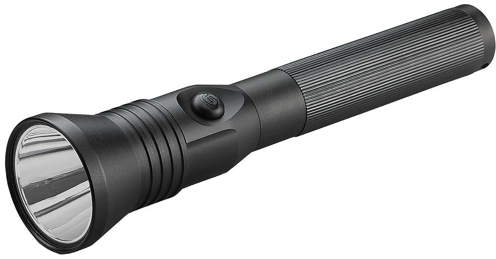 Extremely powerful rechargeable flashlight offers 3 microprocessor controlled variable intensity modes, strobe mode and the latest in power LED technology. Case Material: super tough, non conductive nylon polymer with non-slip rubberized comfort grip. Unbreakable lens with scratch-resistant coating. Light Source: C4 LED technology, impervious to shock with a 50,000 hour lifetime. Deep-dish parabolic reflector produces a long range targeting beam with optimum peripheral illumination to aid in navigation. Features: IPX4 rated for water resistant operation, 3 meter impact resistance tested, and LED charge-continuity indicator on charger base.