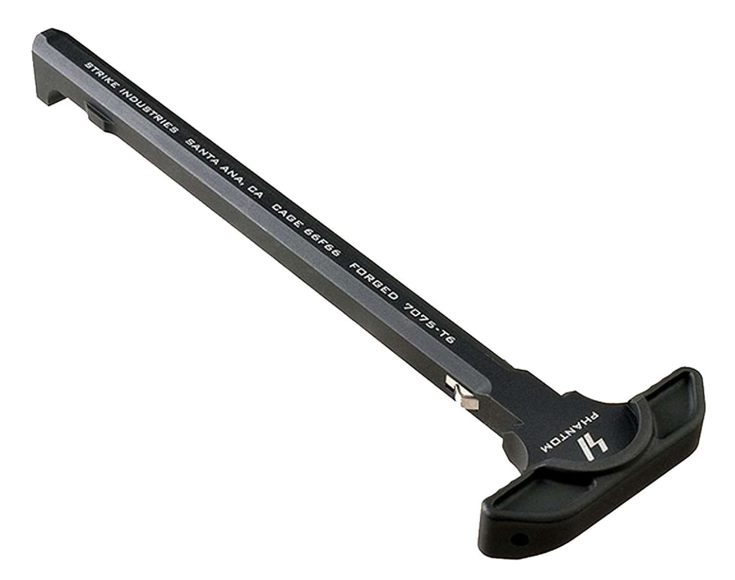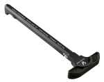 Simple in its execution, yet robust and reliable, the revolutionary Strike Latchless Charging Handle offers forged 7075 construction, efficient side gas venting, and a solid, comfortable interface for the user. Reliable receiver lockup is achieved through a novel hidden spring mechanism that uses the Charging Handle insertion slot in the upper receiver charging handle channel. This channel features a natural radius that will not wear rapidly like the external, 90-degree edge of the standard CH latch area of the upper receiver. The flat spring bearing surface is much larger than a steel ball bearing, spreading force and wear out over a larger area. Increased service life is one benefit of this type of system, as is the comfort and peace of mind that come from a lack of moving or external components that can break or snag/catch on your gear and foreign objects. The solid aluminum construction is durable and provides a solid mounting point for the ISO Tabs, an add-on component that increases surface area for those using large optics and/or gloved hands. Note: For standard mil-spec AR15 rifles only. Not rated for suppressors and/or full auto fire. Not for use on SBRs or pistol length barrels (<14.5"). This model has a black finish.