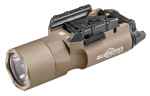 The SureFire X300 Ultra WeaponLight for handguns and long guns features a high-performance LED that generates 500 lumens of stunning white light focused by a Total Internal Reflection (TIR) lens to produce a tight beam with extended reach and significant surround light for peripheral vision. The X300 Ultra is activated via ambidextrous switching located at the rear of the body, providing one-finger control. The switch can be pressed on either side for momentary-on activation and flipped up or down for constant-on activation. The X300 Ultra can be attached to a pistol or a long gun since its Rail-Lock system permits rapid attachment to and removal from Universal and Picatinny rails. Its high-strength aerospace aluminum body is Mil-Spec hard-anodized for superior toughness, and it is O-ring and gasket-sealed for weatherproofing.