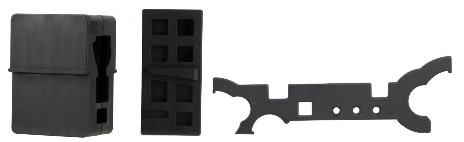 TacFire's AR15 Armorer's Kit is ideal for the home builder looking to build up a new rifle or service their existing weapon. The upper vise block is compatible with standard mil-spec 5.56 upper receivers and holds it in place. The lower vise block is compatible with either the top or bottom of the 5.56 magwell and locks into place with the mag catch. Its Armorer's wrench allows you to work on a 5.56 free-float handguard barrel nut, flash hider and castle nut. The wrench also features a tool to install an AR10/308 free-float handguard.
