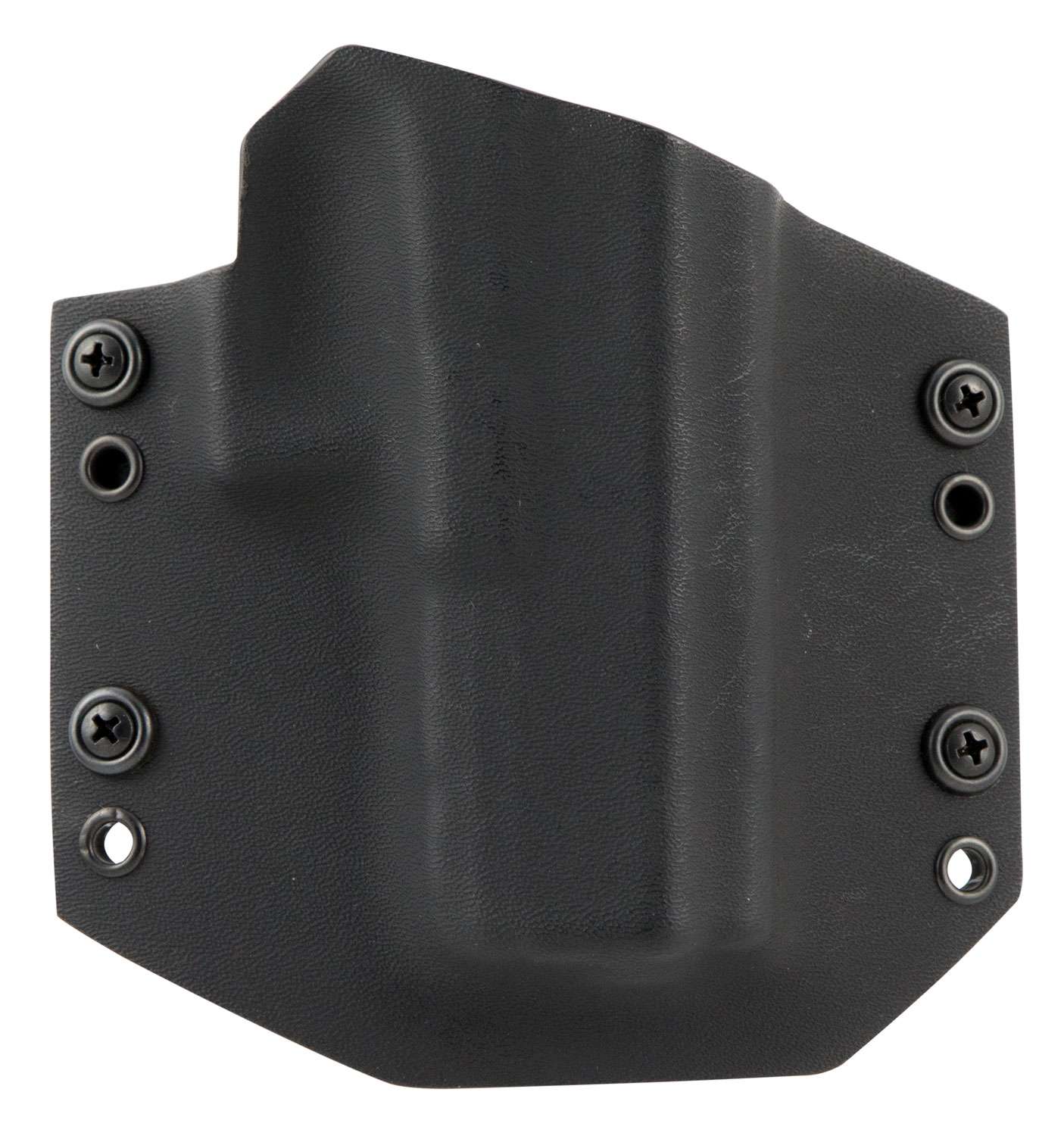 Armament's OathKeeper is an outside the waist holster with adjustable retention. It is constructed of Kydex making it lightweight and comfortable. Included are leather and plastic belt loops. This model has a black finish and is compatible with Glock 19/23/22.