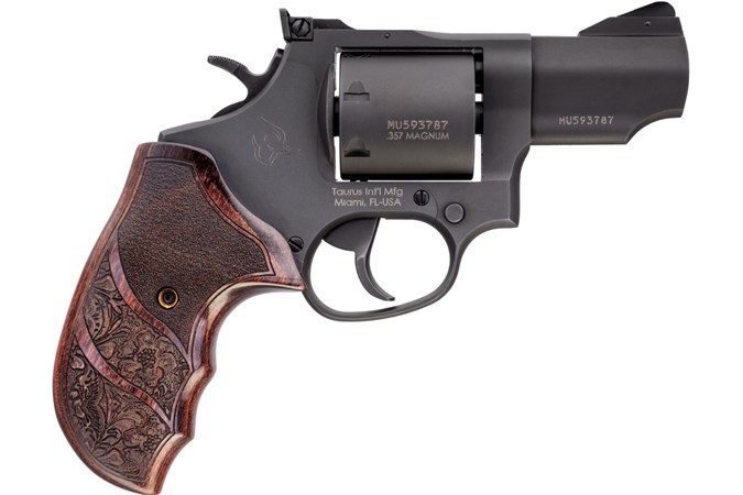 Taurus' 692 revolver is an ideal companion for personal and home defense as well as simply shooting more rounds at the range. It offers the ability to change the caliber from 38 Special +P/357 Magnum to 9mm Luger with the use of the included moon clips. The 692 revolver has a fixed front and adjustable rear sights, spurred hammer and a transfer bar safety. This model has beautiful rosewood grips with a foliage design.