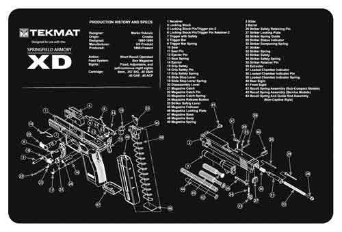TekMat Springfield XD Pistol Mat, 11"x17", Black, Includes Small Microfiber TekTowel, Packed In Tube R17-XD