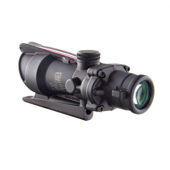 ACOG 4x32 scopes with red dual illumination and triangle reticle BAC. Features dual illumination (fiber optic provides daylight illumination and tritium illuminates reticle at night). The reticle ranges out to 800m for 5.56 (.223 caliber).