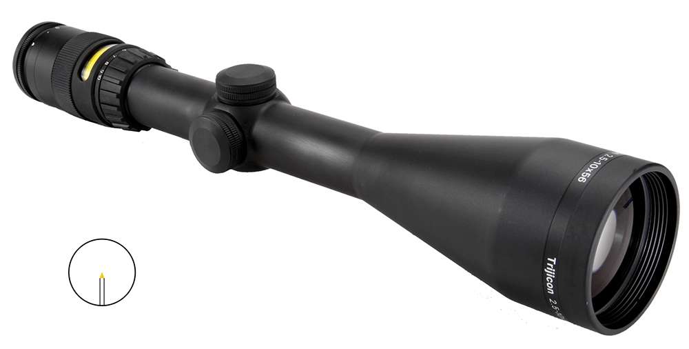 The Trijicon AccuPoint is a high-quality, variable powered sporting riflescope featuring a battery-free illuminated reticle, superior glass clarity and rugged construction. Designed to stand up to the elements, the AccuPoint maintains the refinement needed for precise windage and elevation adjustments. The multi-layer coated lenses provide superior light transmission, while the illuminated reticle aids in quick target engagement. The AccuPoint provides a quick focus eyepiece and long eye relief.