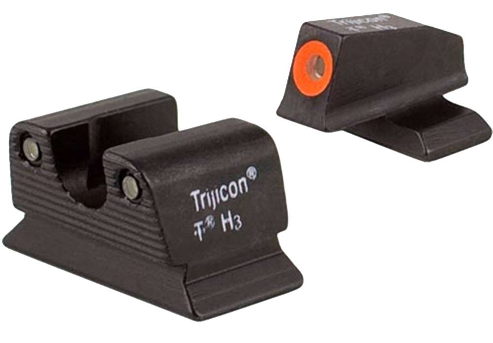 With the challenges of law enforcement and military in mind, Trijicon HD Night Sights is a self-luminous three dot sight set which uses a tritium-phosphor lamp protected within an aluminum sleeve and capped with a sapphire jewel to evenly distribute light and protect from solvents and puncture. They have a metal body with a silicone rubber cushion for shock protection. The u-notched rear sight is angled and serrated to reduce glare, while the front sight has a tall blade. The protective clear coat resists powder residue and cleaning solvents to keep the color bright for years.
