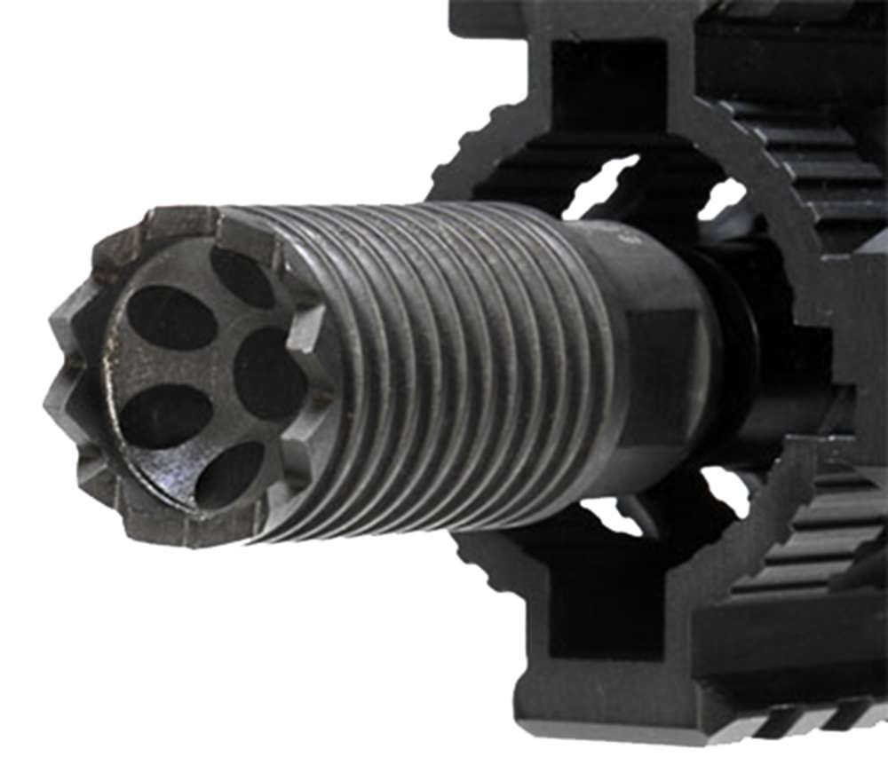 Troy's Claymore Muzzle Brake directs muzzle blast and sound forward, away from the shooter, while retaining effective muzzle brake properties. This rugged muzzle brake features a very low dust signature without a swirling effect and is tough enough to serve as an improvised breaching device if the situation calls for it.