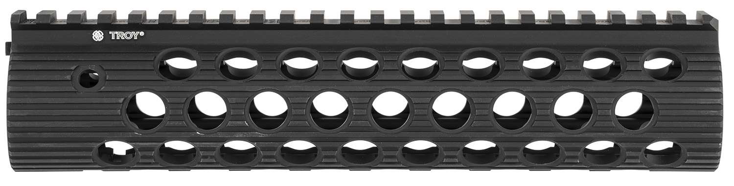 This genesis of modular free-float rails has arrived, building off the TRX Extreme design. The Alpha Rail utilizes a low-profile locking mechanism which offers unparalleled strength and stability. The Alpha Rail disperses heat and runs cooler than other close-to-the-barrel rail systems. With unlimited mounting options and greater heat dispersion, the Alpha Railsets comes with three detachable rails and all mounting hardware. Troy Alpha Rail is machined from 6061-T6 hardened aircraft aluminum and finished in Mil-Spec Type III Hard Coat Anodizing. Works with standard AR15/M16 barrel nut (no barrel nut included). Note: Alpha rails do not work with the TRX barrel nut or wrench.