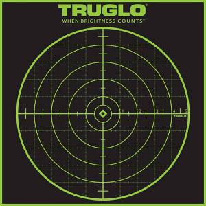 TruGlo's Tru-See target is ideal for shotguns, handguns, rifles, muzzleloaders, airsoft guns, and crossbows. Point-of-impact visibility is enhanced by a fluorescent green halo that is easy-to-see downrange. Printed on heavy stock paper with a self-adhesive backing, you can shoot this target as-is or peel-and-stick it to your favorite backstop.