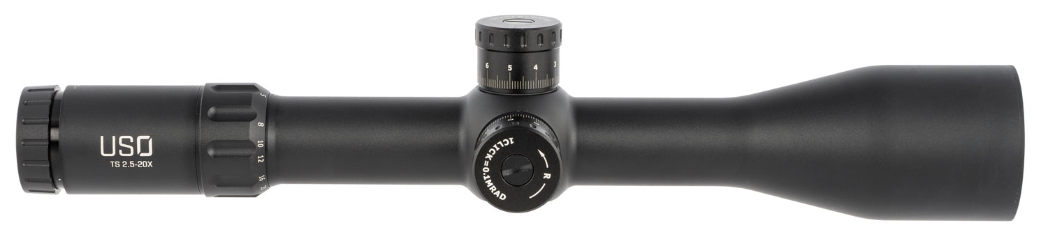 The USO TS-20X riflescope is built to meet the rigorous demands of long-range hunters and precision competitors. Whether you are gearing up your production class PRS Rifle or custom building your precision hunting rig, the TS-20X will help you maximize your rifles performance capabilities. Its wide range magnification and parallax adjustment allows you to dial down to 2.5 power for up close shots, and dial up to 20 power when you need to reach out past 1,000 yds. Its top tier optical system, rugged 34mm aluminum body, and ample amounts of elevation and windage travel will ensure that you are more than ready for your next endeavor.
