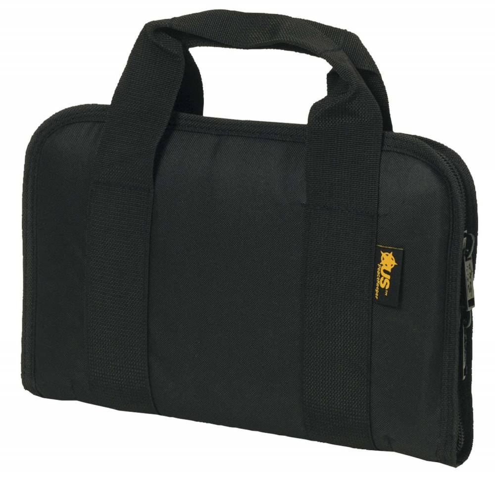 US PeaceKeeper Attache Case organizes and protects your handgun and up to five spare magazines. The slim design allows for easy storage in most safes while keeping your firearm protected and instantly ready for transport to the range. The interior gun pocket is 12.5" x 6.5" and has brushed Tricot lining with 1.25" padding, hook and loop tab to secure gun, and wide elastic bands to hold the magazines. It has heavy duty, self-repairing double zipper with locking capability, and wraparound handles. The Attache Case weighs .5 lbs.