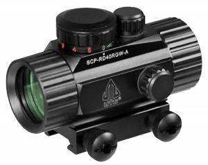 Leapers CQB Dot Sight is a quick aim electronic dot sight with red/green dual illumination. The 38mm tube comes with emerald lens coating for maximum brightness and clarity. This model includes an integral Picatinny mounting deck and flip-open lens caps.