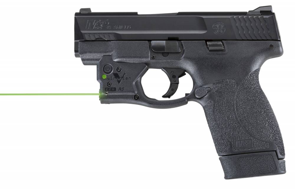 The Viridian R5 Gen 2 green laser sighting system is easy to install and blends seamlessly into the trigger guard for invisible profile and smooth draw. Viridian's green lasers utilize a 510-532nm wavelength range creating an optimum target dot that is up to 50 times brighter than red lasers. The gen 2 models include 3X more battery life (up to 5 hours) and an INSTANT-ON ambidextrous, inside the waistband (IWB) holster with automatic laser activation. Made of microfiber, this holster is more comfortable and durable than the previous models. This model is compatible with Smith and Wesson M&P Shield 45.