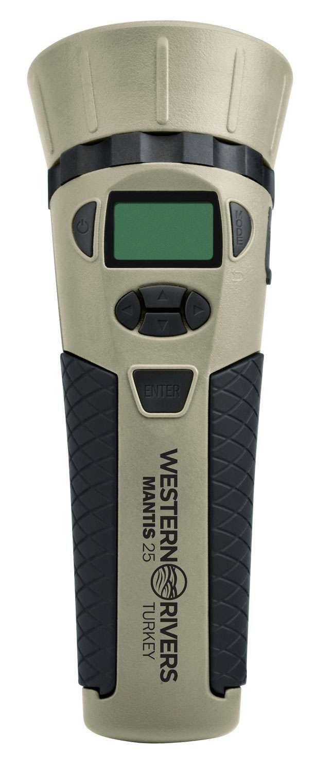 The Mantis 25 Paul Butski Signature Edition turkey call is pre-loaded with 25 calls recorded by the "Maestro" who is a six-time US Open Turkey Calling Champion. It has a 4-way key pad call selection/volume control, backlit LED screen, random repeat timed options, and a sound activation trigger button. It has a versatile, compact design with lock-in, pivoting legs and a hand lanyard. It is powered by four AAA batteries (not included).