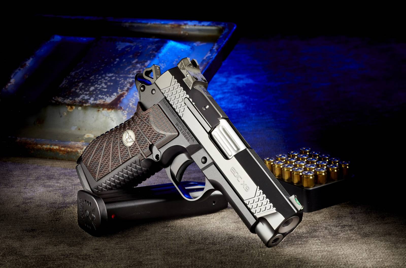 The Wilson Combat EDC X9s is a features a sub-compact size aluminum X-Frame with reliability enhanced frame rails. It has a crisp trigger pull, concealment bullet proof magazine release and slide stop, Unique X-TAC rear cocking serration treatment on slide, and a stainless cone barrel with reliability enhancing lock-up. The EDC X9s utilizes a stainless steel tri-top slide with external extractor. It comes standard with one 10-rd magazine and one 15-rd extended magazine with machined aluminum hard-use grip frame extension.