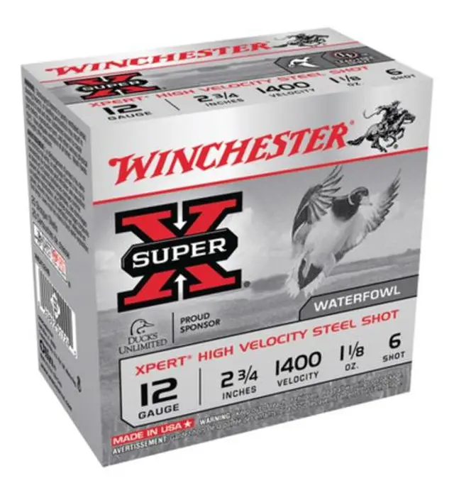 Super-X Waterfowl ammunition has provided exceptional quality and outstanding performance for all types of hunters and shooters who rely on its time-proven dependability backed by legendary excellence. High Velocity provides more energy per pellet for increased range and shorter leads, resulting in greater terminal performance and the Xpert steel shot is corrosion resistant with consistent patterns.