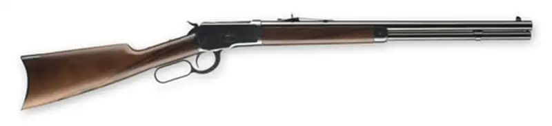 The Model 1892 features a 20" Gloss blued barrel, oil finished Grade I walnut stock, Crescent buttplate, Marble's gold bead front sight and Buckhorn style rear sight. This rifle also features a convenient rear tang safety, but don't despair, companies (like Marble's) offers one made to fit should you desire to add a tang sight later.