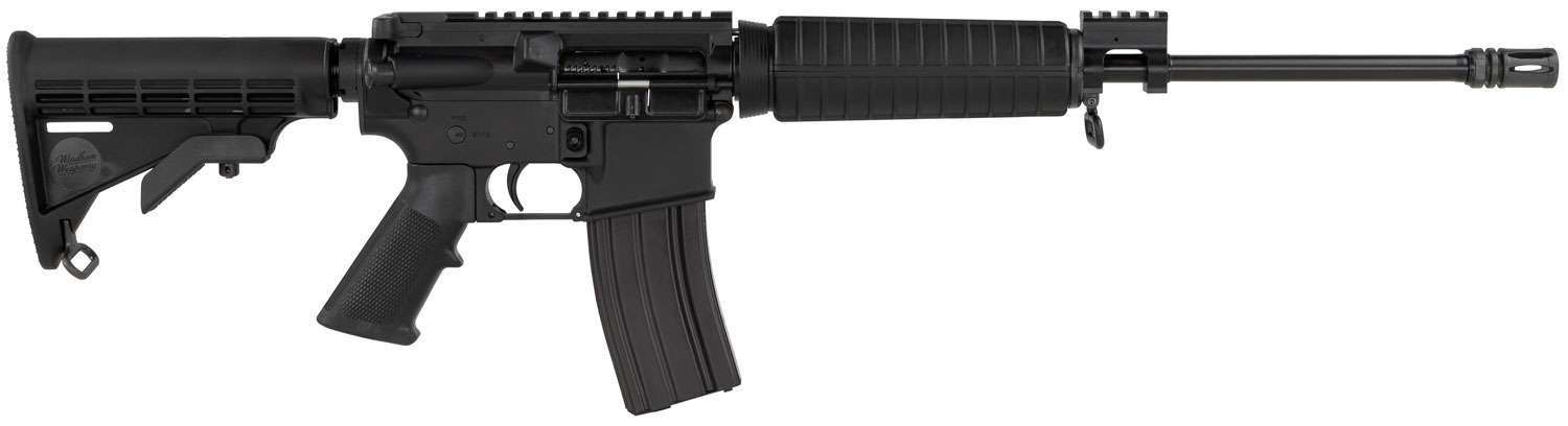Windham Weaponry's SRC in .223/5.56 NATO comes equipped with a 6-position buttstock, double heat shield handguard, and one 30 round magazine. This semi-automatic rifle is powered by a gas impingement system.