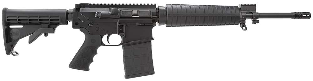 Windham Weaponry's SRC (Sight Ready Carbine) features a chrome-lined 16" 4150 chrome moly vanadium steel barrel with M4 feed ramps. The 7075 T6 aircraft aluminum receiver sports a durable black hard-coat anodize finish. The rifle features an aluminum trigger guard, M4 double heat-shield hand-guards and is optic ready. This rifle is available in black and TimberTec Camo and is chambered in .308 Winchester with 20+1 capacity. It comes with a hard plastic gun case with black web sling and Q.D. sling swivel.