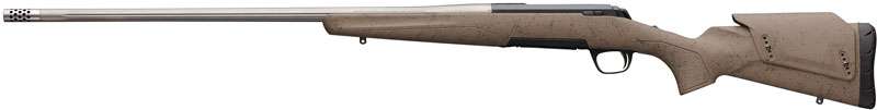 The Browning X-Bolt Western Hunter Long Range features high strength steel receiver, stainless steel sporter contour fluted barrel, removable muzzle brake, removable magazine, top-tang thumb safety, extended bolt handle, Hard Core Fiber Fusion stock in Cerakote Flat Dark Earth finish, new adjustable comb system.