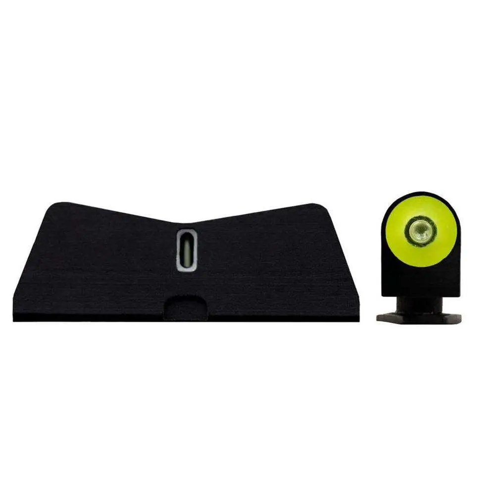 XS DXT sights are the finest sights made for fast sight acquisition in all light conditions. It enhances sight acquisition in all light conditions and excels in high stress defensive situations.The DXT2 Big Dot Night Sights offer the best front sight visibility in all lighting conditions. It drives focus to the front sight using a high-contrast front and a V-notch rear for an unobstructed view of the front sight. The front sight uses a patent pending glow dot that absorbs light and glows in low light levels. Optic Orange is designed to offer a high-contrast sight picture when shooting in bright light conditions and maintain its visibility in decreasing light levels. The increased surface area of the convex dot increases light absorption, intensifying the charge of the glow properties of the dot. The dot-the "i" sight picture, with a tritium dot in the front sight and a tritium bar in the rear, prevents confusing the front and rear sight in high-stress situations. The wide field of view increases visibility of the front sight and of the threat downrange.