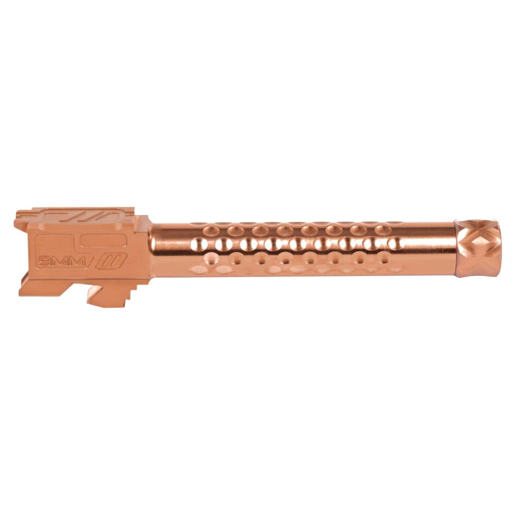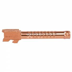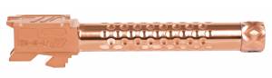 ZEV Technologies Optimized Match Barrels have been redesigned for improved performance compatibility. Enhanced features include a recessed target crown, a new match chamber, and a stylized barrel hood with caliber and model engravings and a loaded chamber indicator. ZEVs proprietary broach cut 1 in 14 left hand twist rifling was developed to create the most accurate Glock aftermarket barrel available, and testing confirms a significant increase in accuracy over factory barrels in all standard bullet weights. Manufactured from 416R stainless steel which is an ideal material for making match grade barrels because the material allows for the precise cutting of chambers and rifling which results in a more accurate barrel.
