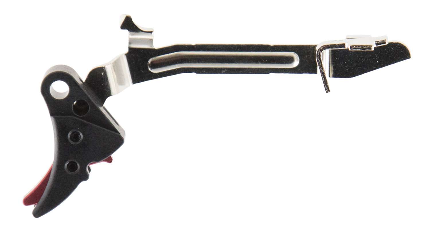 ZEV's Flucrum Adjustable Trigger bar kit features a wider trigger pad and safety for better user engagement and offer drop-in functionality with improved ergonomics and a clean, crisp creep free trigger pull. The replacement trigger bar reduces travel, and provides professional, crisp trigger pull while keeping all factory Glock safeties intact. This model is compatible with Glock 17C/17L/19/19C/22/22C/23/23C/24/24C/26/27/31/31C/32/32C/33/34/35/37/38/39 and is a small frame trigger kit only (9mm/.40). NOTE: ZEV Technologies recommends this item for competition use only.