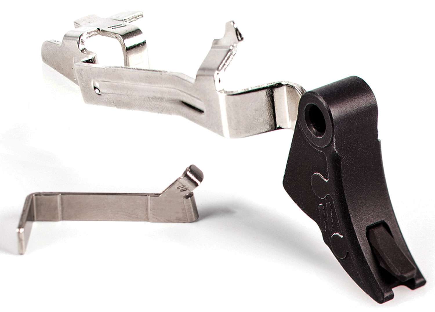 ZEV Technologies Pro Trigger is built from the ground up to perform better and more reliably than anything else on the market. At its core is a proprietary trigger bar and professional connector. This model has a curved face riveted trigger and black housing and safety. It is compatible with G19/G17/G34/G26/G17L/G22/G23/G27/G35/G24/G37/G38/G39/G31/G32/G33 Gen1-4.